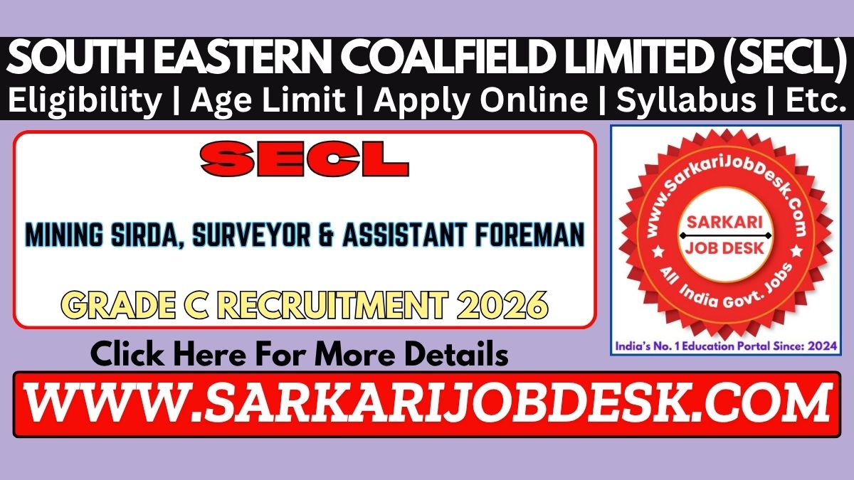 South Eastern Coalfield Limited (SECL)SECL Mining Sirdar, Surveyor & Assistant Foreman Grade C Online Form 2026SECL/HR/MP/Recruitment/2026/166 : Short Details of NotificationWWW.SARKARIJOBDESK.COM |