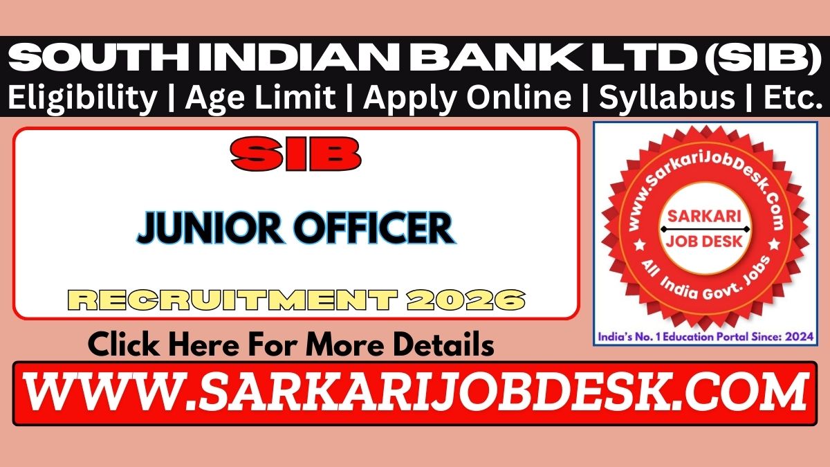 South Indian Bank Ltd (SIB)SIB Junior Officer Recruitment 2026SIB Junior Officer Exam 2026 : Short Details of NotificationWWW.SARKARIJOBDESK.COM |