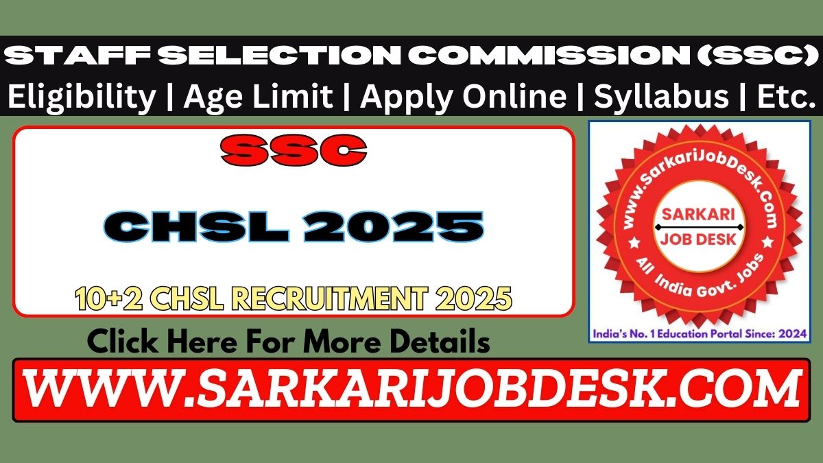 Staff Selection Commission (SSC)SSC Combined Higher Secondary Level (CHSL) 10+2 Recruitment 2025SSC CHSL 2025 Exam : Short Details of NotificationWWW.SARKARIJOBDESK.COM |