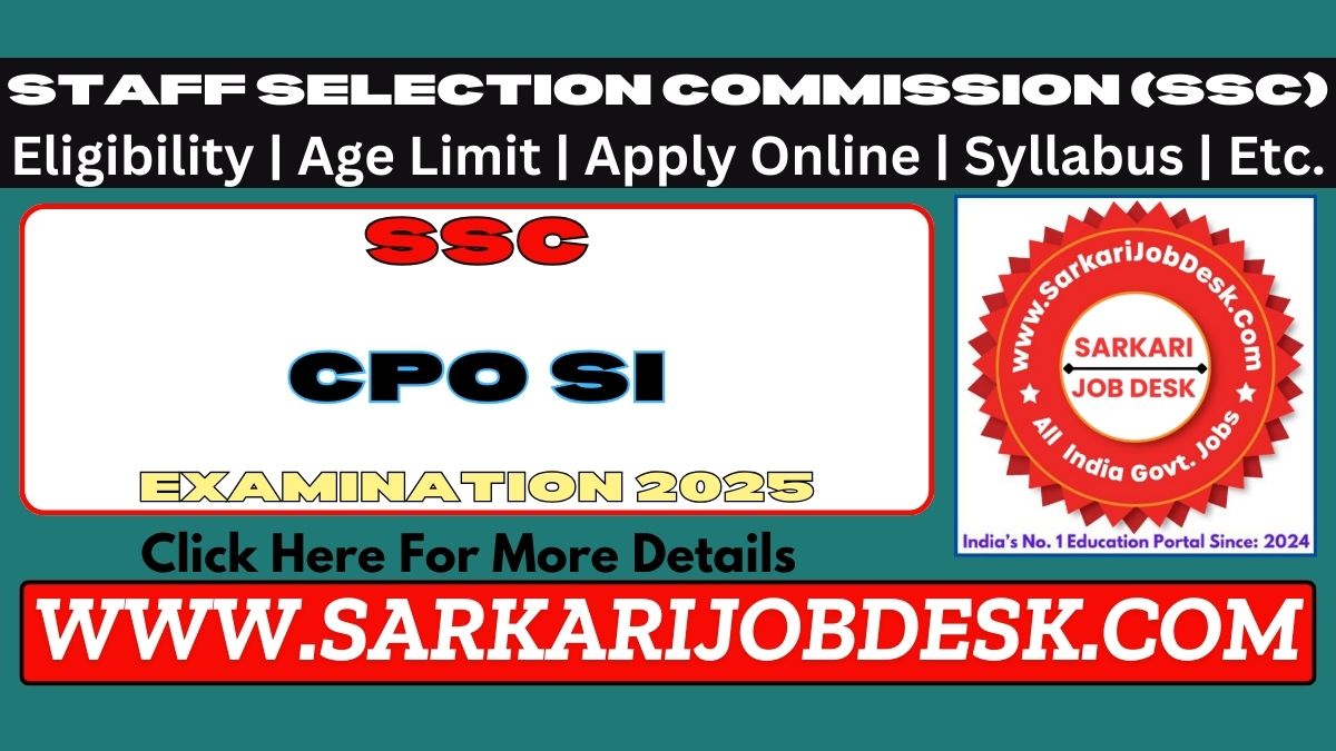 Staff Selection Commission (SSC)SSC Sub Inspector (SI) in Delhi Police, Central Armed Police Forces Examination 2025SSC CPO SI Exam 2025 : Short Details of NotificationWWW.SARKARIJOBDESK.COM |