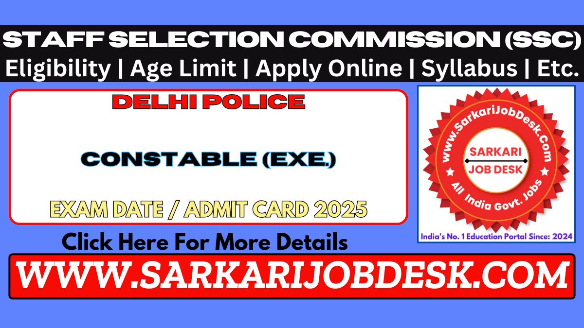 Staff Selection Commission (SSC)Delhi Police-Constable (Executive) Recruitment 2025SSC Delhi Police-Constable (Executive) 2025 : Short Details of NotificationWWW.SARKARIJOBDESK.COM |