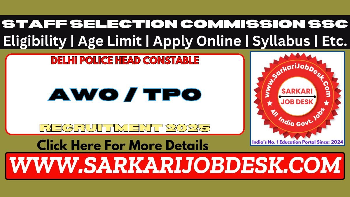 Staff Selection Commission (SSC)SSC Delhi Police Head Constable AWO / TPO Recruitment 2025SSC Delhi Police Head Constable AWO / TPO 2025 : Short Details of NotificationWWW.SARKARIJOBDESK.COM |