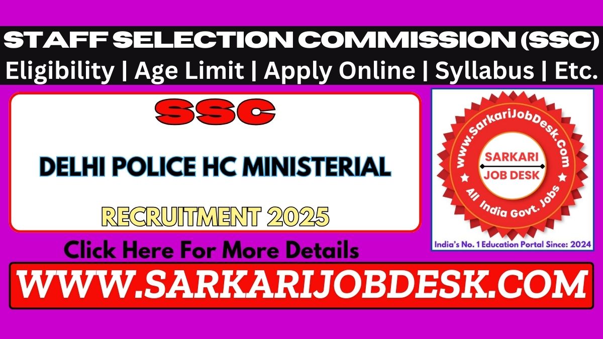 Staff Selection Commission (SSC)SSC Delhi Police Head Constable Ministerial Recruitment 2025SSC Delhi Police Head Constable Ministerial Exam 2025 : Short Details of NotificationWWW.SARKARIJOBDESK.COM |