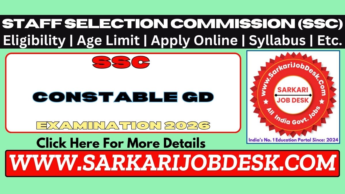 Staff Selection Commission (SSC)SSC GD Constable Recruitment 2025SSC Constable GD Exam 2026 : Short Details of NotificationWWW.SARKARIJOBDESK.COM |