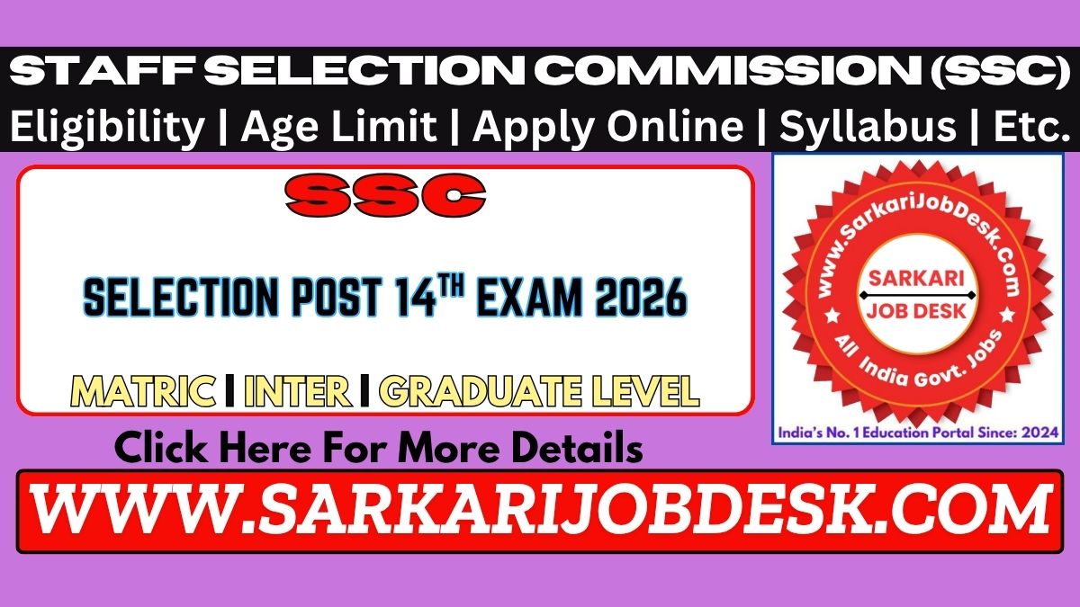 Staff Selection Commission (SSC)SSC Various Selection Post XIV Recruitment 2026SSC Phase-XIV/2026/Selection Posts : Short Details of NotificationWWW.SARKARIJOBDESK.COM |
