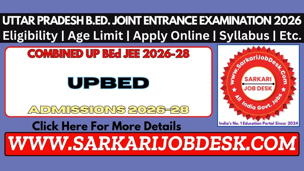 Uttar Pradesh B.Ed. Joint Entrance Examination 2026Conducted By : Bundelkhand University, BU JhansiBU Jhansi 2 Year Combined UP BEd JEE 2026-28 : Short Details of NotificationWWW.SARKARIJOBDESK.COM |