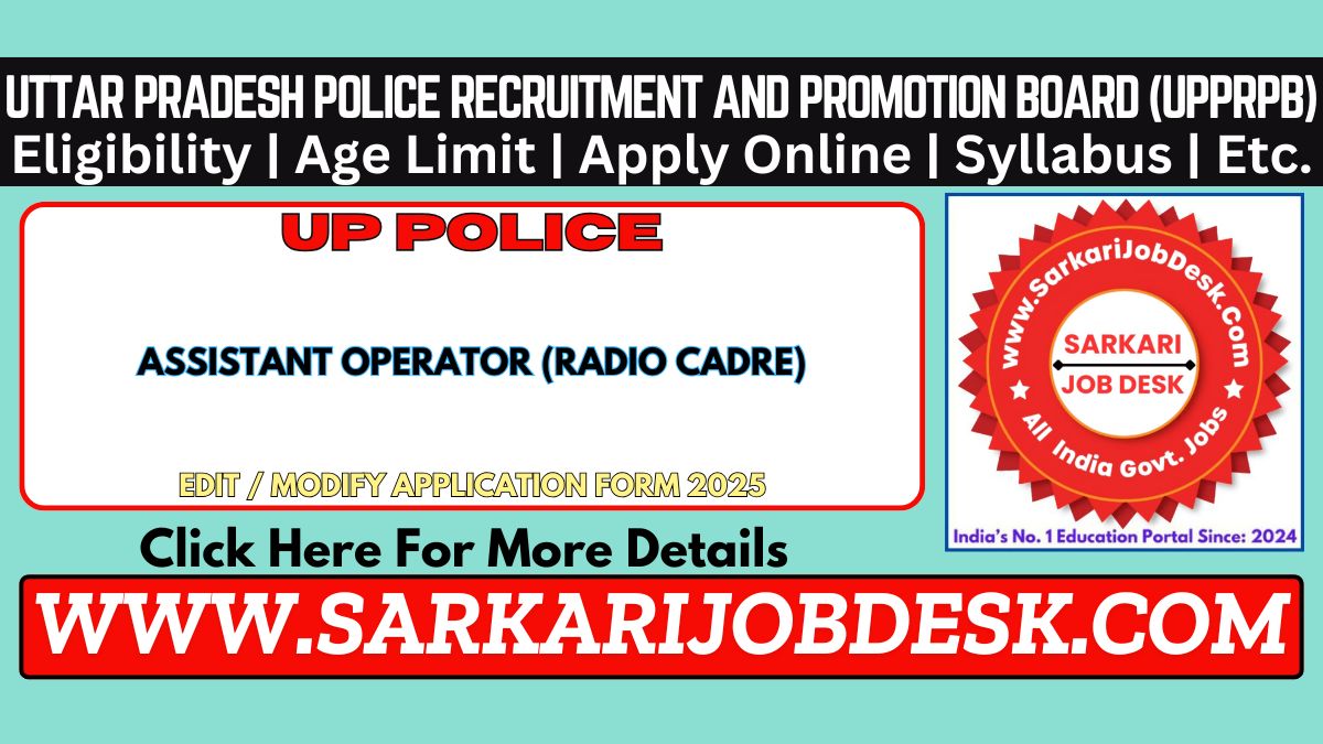 | Name of Post: | UP Police Assistant Operator Recruitment 2025 Edit/ Modify Application Form for 44 Post |