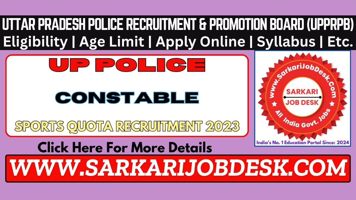 Uttar Pradesh Police Recruitment & Promotion Board (UPPRPB)UP Police Constable Sports Quota Recruitment 2023UP Police Advt No.: PRPB 02/2022 : Short Details of NotificationWWW.SARKARIJOBDESK.COM |