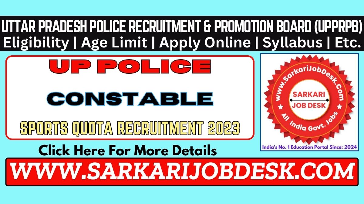 Uttar Pradesh Police Recruitment & Promotion Board (UPPRPB)UP Police Constable Sports Quota Recruitment 2023UP Police Advt No.: PRPB 02/2022 : Short Details of NotificationWWW.SARKARIJOBDESK.COM |