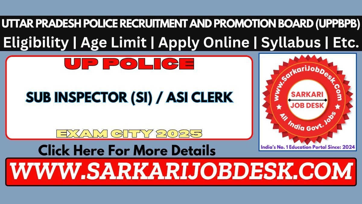 Uttar Pradesh Police Recruitment and Promotion Board (UPPBPB)UP Police SI (Confidential) ASI (Clerk / Accountant) Recruitment 2024UP Police Advt No.: PRPB 4-1-3/2023 : Short Details of NotificationWWW.SARKARIJOBDESK.COM |