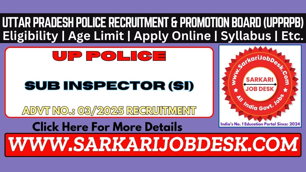 Uttar Pradesh Police Recruitment & Promotion Board (UPPRPB)UP Police Sub Inspector SI Recruitment 2025UPP Advt No. 03/2025 : Short Details of NotificationWWW.SARKARIJOBDESK.COM |