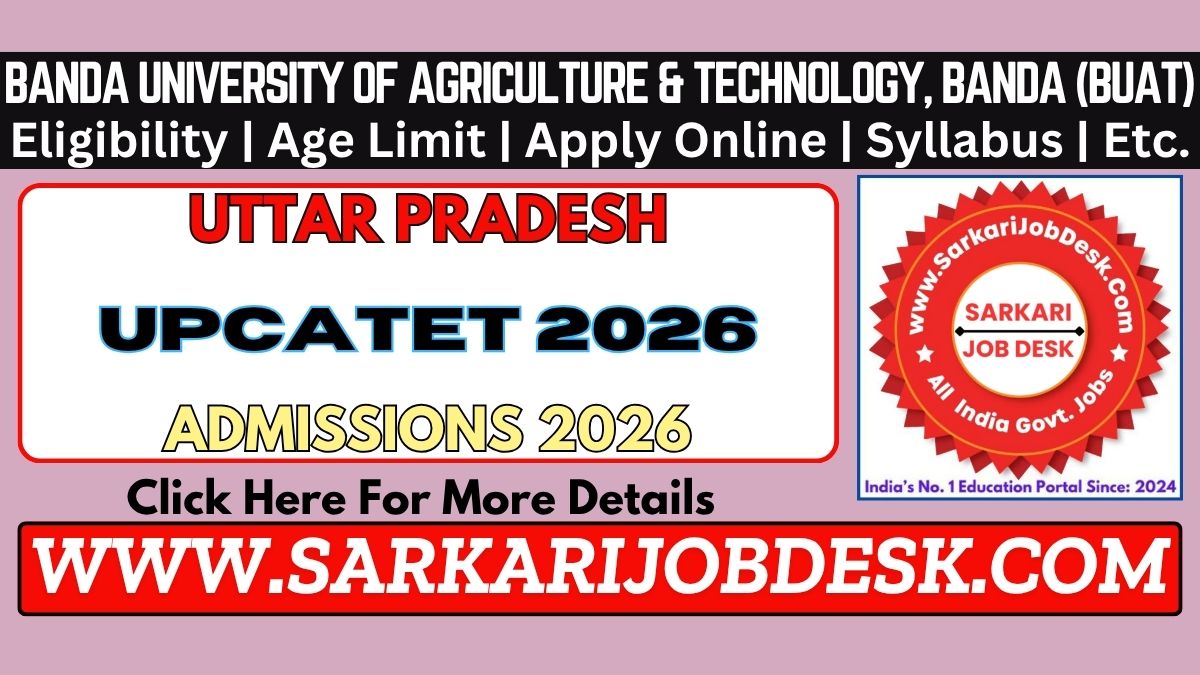 Banda University of Agriculture & Technology, Banda (BUAT) (Conducted University)U.P. Combined Agriculture and Technology Entrance Test 2026UPCATET Exam 2026 : Short Details of NotificationWWW.SARKARIJOBDESK.COM |