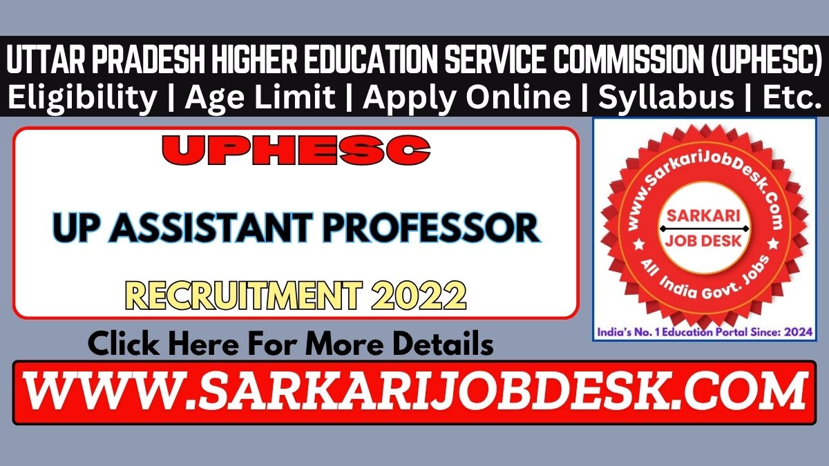 Uttar Pradesh Higher Education Service Commission (UPHESC)UPHESC UP Assistant Professor Recruitment 2022UPHESC Asst. Professor Advt No.: 51 - 2022 : Short Details of NotificationWWW.SARKARIJOBDESK.COM |