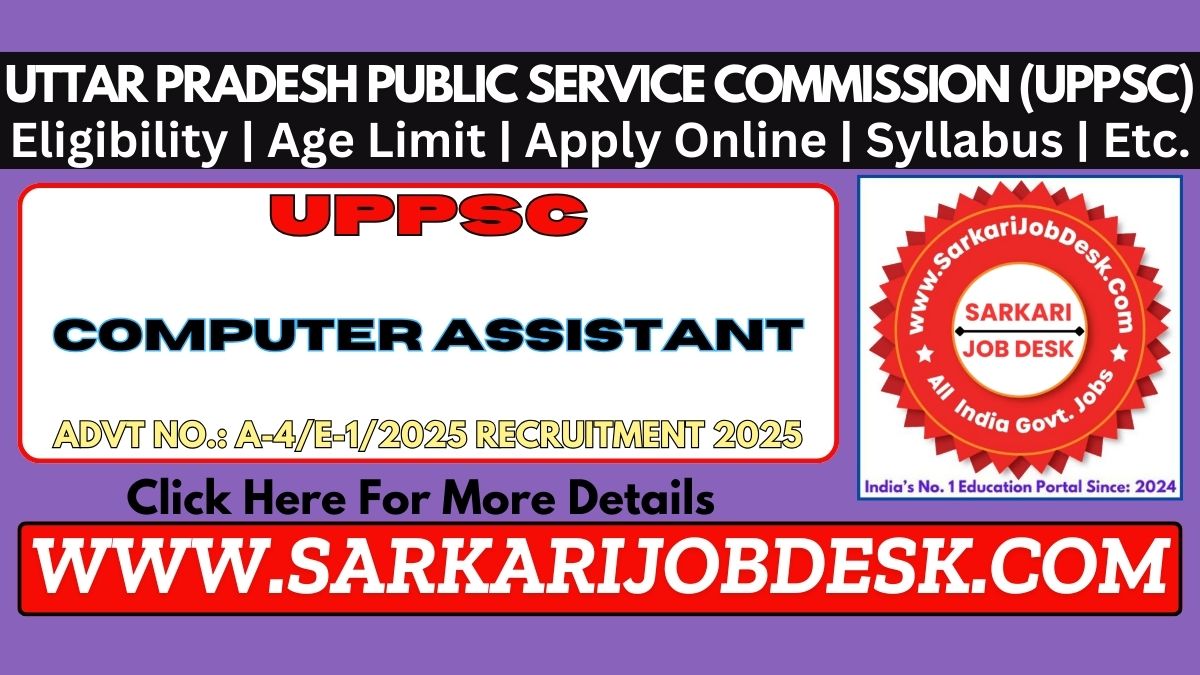 Uttar Pradesh Public Service Commission (UPPSC)UPPSC Computer Assistant Recruitment 2025UPPSC Advt No. A-4/E-1/2025 : Short Details of NotificationWWW.SARKARIJOBDESK.COM |