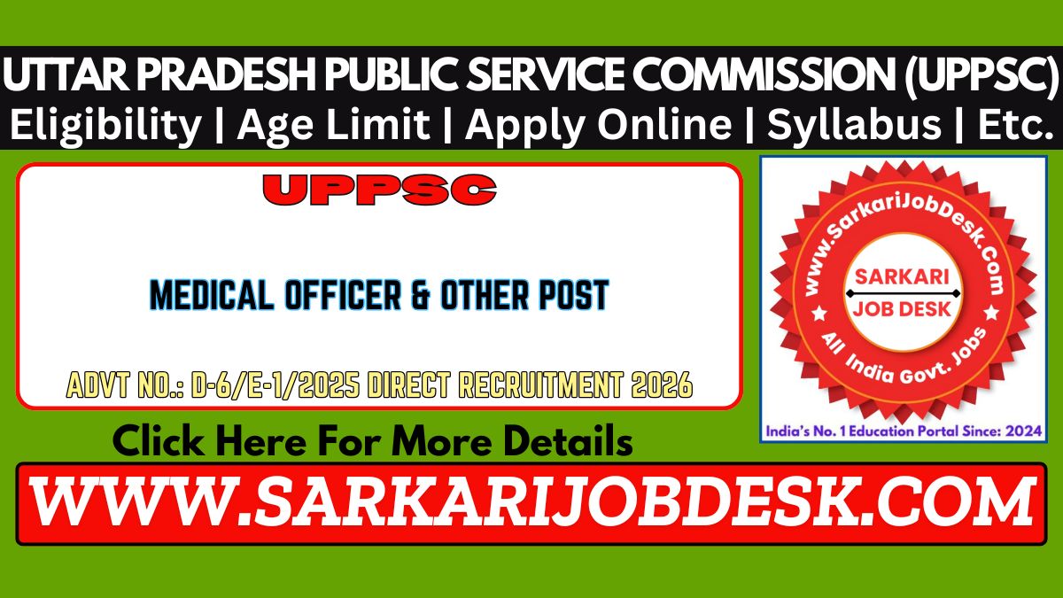 Uttar Pradesh Public Service Commission (UPPSC)UPPSC Medical Officer, Swasthya Shiksha Adhikari & Other Post Recruitment 2025UPPSC Advt No. : D-6/E-1/2025 : Short Details of NotificationWWW.SARKARIJOBDESK.COM |