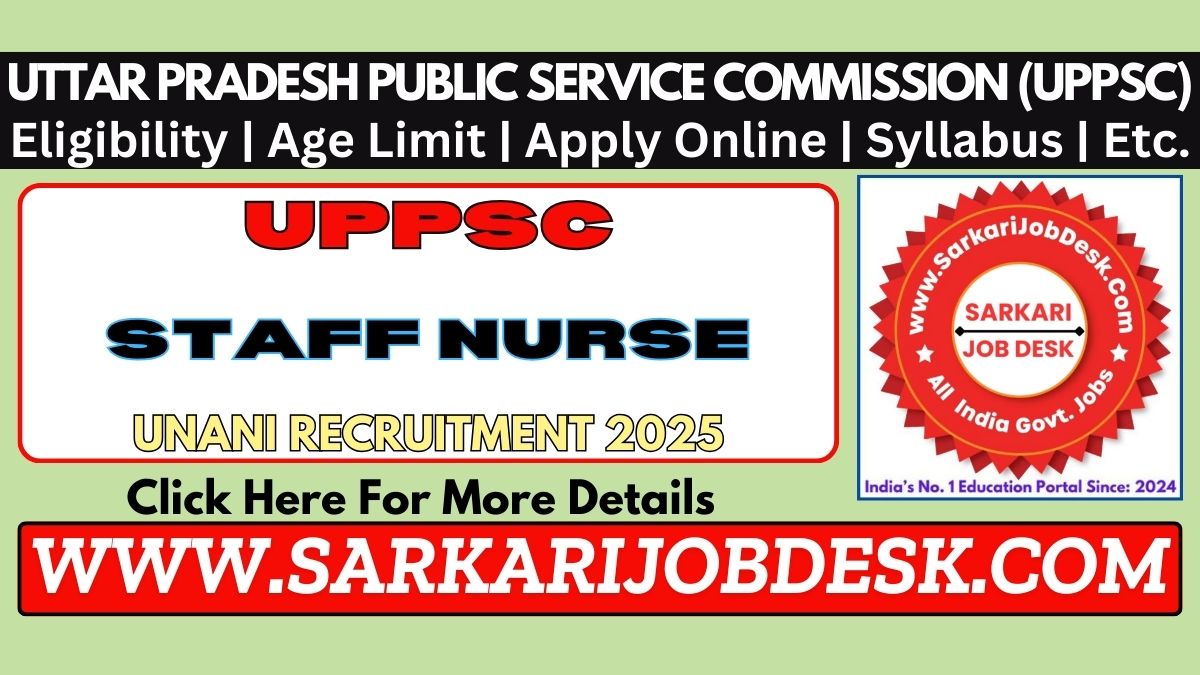 Uttar Pradesh Public Service Commission (UPPSC)UPPSC Staff Nurse Unani Recruitment 2025UPPSC Advt No.: A-3/E-1/2025 : Short Details of NotificationWWW.SARKARIJOBDESK.COM |