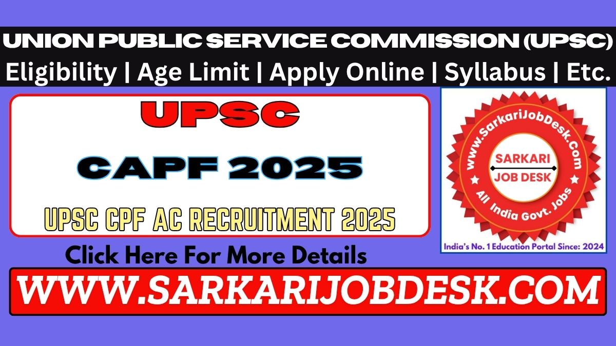 Union Public Service Commission (UPSC)UPSC Combined Central Armed Police Force (Assistant Commandant AC Exam 2025)UPSC Advt NO.: 09/2025-CAPF : Short Details of NotificationWWW.SARKARIJOBDESK.COM |