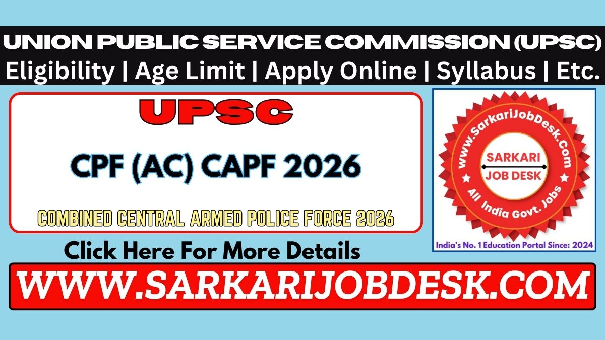 Union Public Service Commission (UPSC)UPSC Combined Central Armed Police Force (Assistant Commandant AC Exam 2026)UPSC Advt NO. : 08/2026-CAPF : Short Details of NotificationWWW.SARKARIJOBDESK.COM |