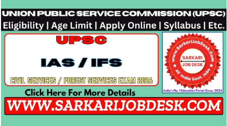 Union Public Service Commission (UPSC)UPSC Civil Services / Forest Service IAS / IFS Recruitment 2026UPSC IAS / IFS Exam 2026 : Short Details of NotificationWWW.SARKARIJOBDESK.COM |