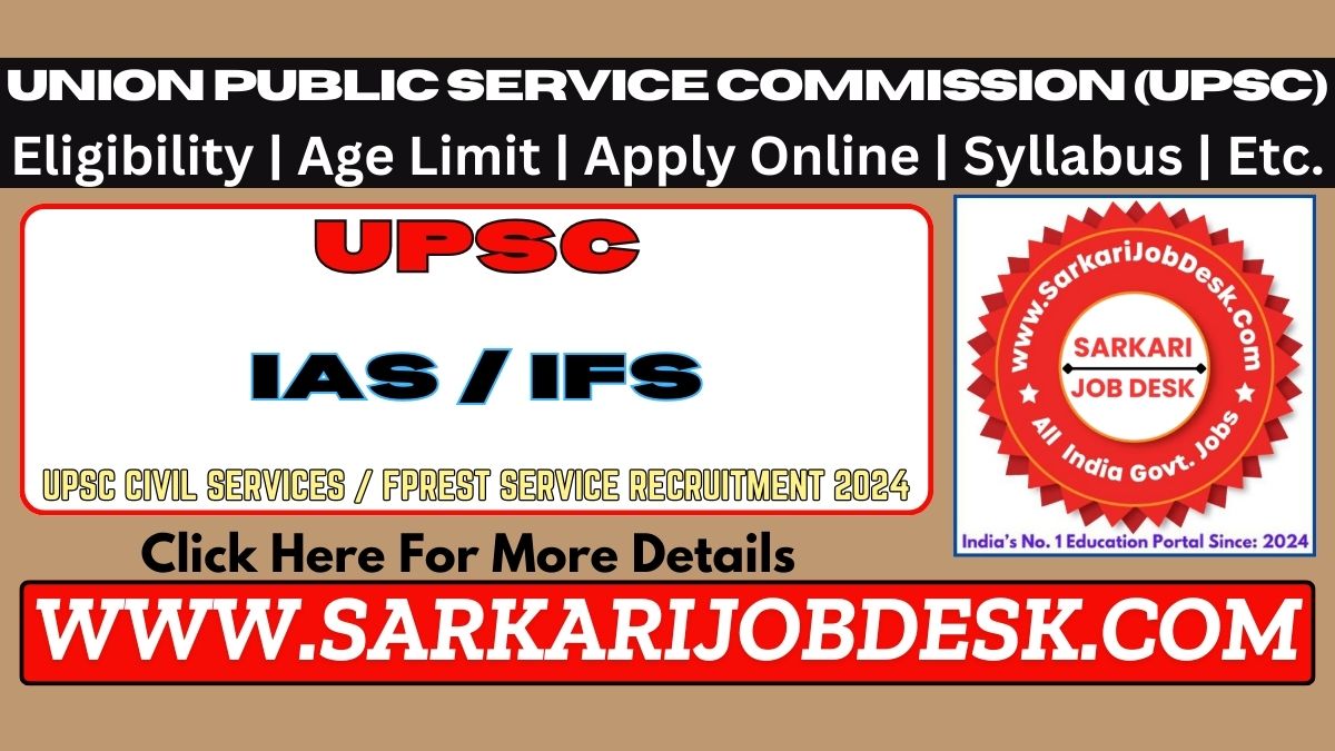 Union Public Service Commission (UPSC)UPSC Civil Services / Forest Service IAS / IFS Recruitment 2025UPSC Civil Services Exam 2025 : Short Details of NotificationWWW.SARKARIJOBDESK.COM |