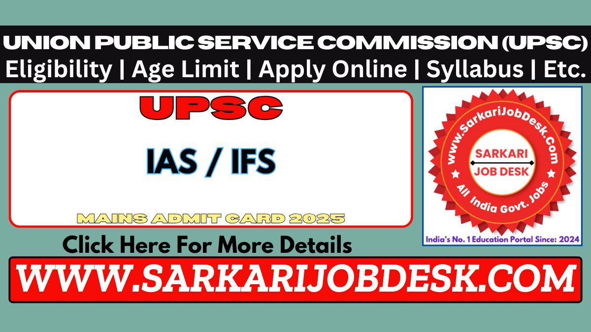 Union Public Service Commission (UPSC)Union Public Service Commission Recruitment 2025UPSC IAS/IFS Advt No.: 05, 06/2025 : Short Details of NotificationWWW.SARKARIJOBDESK.COM |