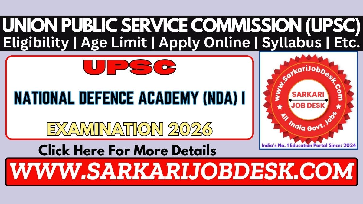 Union Public Service Commission (UPSC)UPSC National Defence Academy (NDA) & NA I Recruitment 2026UPSC NDA I Advt No.: 03/2026 : Short Details of NotificationWWW.SARKARIJOBDESK.COM |