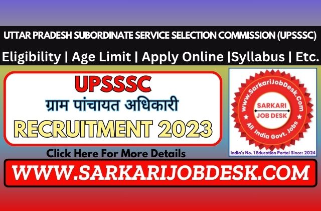 Uttar Pradesh Subordinate Service Selection Commission (UPSSSC)UPSSSC Gram Panchayat Adhikari Recruitment 2023 Mains ExamUPSSSC Village Panchayat Officer Advt No.: 01-Exam/2023 : Short Details of NotificationWWW.SARKARIJOBDESK.COM |