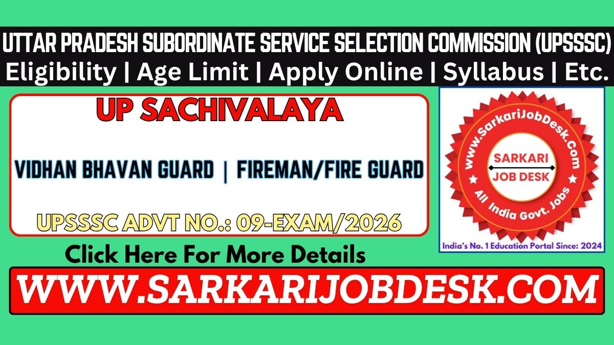 Uttar Pradesh Subordinate Service Selection Commission (UPSSSC)UP Sachivalaya Vidhan Bhavan Guard and Vidhan Bhavan Fireman/Fire Guard Recruitment 2026 Mains ExamUPSSSC Advt No.: 09-Exam/2026 : Short Details of NotificationWWW.SARKARIJOBDESK.COM |