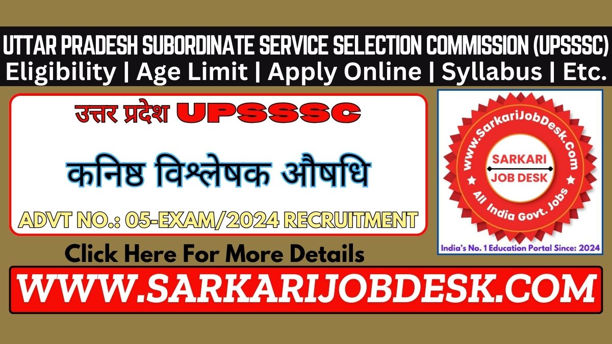 Uttar Pradesh Subordinate Service Selection Commission (UPSSSC)UPSSSC Junior Analyst (Medicine) Recruitment 2024 Mains ExamUPSSSC Advt No.: 05-Exam/2024 : Short Details of NotificationWWW.SARKARIJOBDESK.COM |