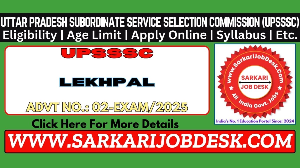 Uttar Pradesh Subordinate Service Selection Commission (UPSSSC)Uttar Pradesh UPSSSC Lekhpal Recruitment 2025 Mains ExamUPSSSC Lekhpal Advt No.: 02-Exam/2025 : Short Details of NotificationWWW.SARKARIJOBDESK.COM |