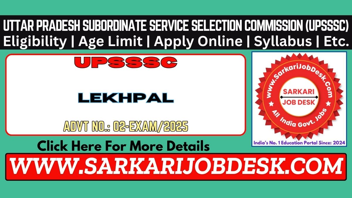 Uttar Pradesh Subordinate Service Selection Commission (UPSSSC)Uttar Pradesh UPSSSC Lekhpal Recruitment 2025 Mains ExamUPSSSC Lekhpal Advt No.: 02-Exam/2025 : Short Details of NotificationWWW.SARKARIJOBDESK.COM |