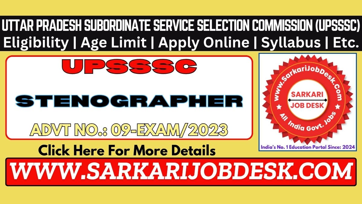 Uttar Pradesh Subordinate Service Selection Commission (UPSSSC)UPSSSC Stenographer Recruitment 2023 Mains ExamUPSSSC Steno Advt No.: 09-Exam/2023 : Short Details of NotificationWWW.SARKARIJOBDESK.COM |